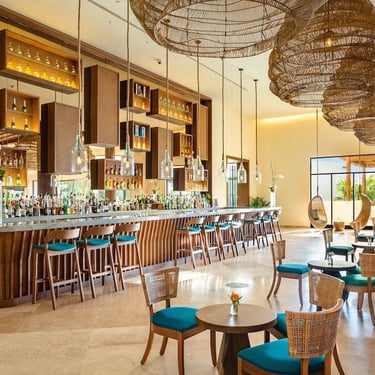 - Bares: Tres bares con un programa de mixología dedicado y un salón con entretenimiento en vivo.