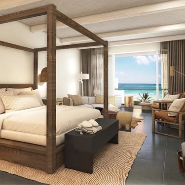- Suites: Amplias y hermosas, con grandes balcones que cuentan con bañeras de hidromasaje y sofás, a menudo con vistas al océano. Muchas incluyen piscinas semi-privadas. Todas las habitaciones vienen con un "Servicio Anfitrión" personal.